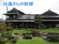 長い廊下の突き当りから二階にあがると白蓮さんのお部屋です。意外とこじんまりしてましたが、ここからの庭園の眺めは抜群です。 |
