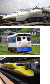 C太平洋戦争中に工事が中止された幻の高速鉄道は? A/弾丸列車 B/ミサイル列車 C/ロケット列車 D初代新幹線の0系に比べて700系など最近の車両で「鼻」と呼ばれる 先頭部分が長くなった主な理由は? A/見晴らしがいいように B/かっこいいから C/騒音を減らす為 EJR四国「鉄道ホビートレイン」には実際に0系で使われた部品が 使われている。どこ? A/先頭のライト B/一部の窓 C/一部の座席 F寒冷地の新幹線で線路に水を撒くスプリンクラーの役目は? A/レールの温度を上げる B/ごみを取り除く C雪を溶かす Gドクターイエローと呼ばれる特別な新幹線は何をする? A/走りながら線路や架線を修理 B/走りながら線路や架線を点検 C/スピード記録に挑戦 |