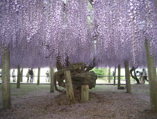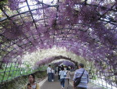 はじめて知った名前の藤園に興味津津で旅行社のツアーに 申し込みました。 北九州市八幡東区にあり世界の絶景10にも選ばれたそうです。 もうフジの時期は終わりじゃないかと思いつつもこちらの都合と旅行社企画の日が一致した5月5日に参加することに。 感想は「素晴らしい!!」の一言です。 駐車場につくまで延々3時間待ちでしたが、待ち時間も帳消しになるような見事なフジ園でした。 まず着いてすぐフジのいい香りが一面に漂っています。 そして映画のワンシーンのようなふじの花のトンネル・グラデー ションがきれいな藤棚・体を包み込んでくれるふじのドーム・実に 22種類150本のフジ・ふじ・藤・・・・です。感激につぐ感激! 平面ではないので綺麗さもひとしおです。 今年の藤園はもう閉園したようです。 入場料も見頃によってちがうようで800円だとまだ早く1000円だと見頃なので、入場料の料金を聞いて行ったほうがいいと言われました。 是非皆さんにも見てほしいおすすめ藤園です。感激しますよ。 |