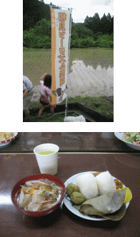 毎年恒例の「あいがもん倶楽部主催田植え体験」に行ってきました。 連日の雨、当日も夜から降り続く雨に中止かなと思っていましたが 決行との連絡。 雨合羽に傘 濡れてもいいように万全の準備をして行きましたが だんだんと晴れ間が多くなりありがたい事に午後には完全に晴れて しまいました。 きっと田の神様が降りてこられたのでしょう。かんかん照りでも なくちょうどいい具合のお天気で田植えをすることができました。 いつもは川沿いの田んぼでしたが今回は棚田での田植え。 遠方に連山を眺めながら気持よく一苗一苗植えていきました。 田植えの後は具だくさんの鴨汁・合鴨米のおにぎり・おまんじゅう 美味しいサラダ、お漬物・きんぴらごぼう等など沢山の心尽くしの昼食。 大変美味しく頂きました。 鴨のひなが放鳥され虫や雑草を食べ大きくなると鴨上げ、稲刈りとお米が出来るまでには水の細かい管理から大変な労力がいるのだなとつくづく感じました。 3度目の田植え体験だったのであまり疲れもなく楽しくできました。 鹿本地区の5軒の農家さんが「あいがもん倶楽部」を結成されて 毎年田植え体験・あいがも放鳥見学・鴨上げ見学・等々されています。 熊本市内から1時間弱なのに水も空気もきれいで、最高の ロケーションです。 |