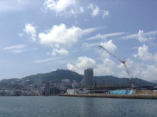 夏休みに、家族で軍艦島クルーズに行きました。 熊本を出発したころは、小雨がぱらつき曇りで、ちょうどよかったと思っていたのに長崎について間もなく晴れてきて、乗船するころはカンカン照りでした。それでも海風は気持ちよく子どもにとっては初めての船で楽しかったようです。 長崎港から40分弱で軍艦島に到着しました。上陸人数と時間が決まっており(私たちは15:30)前の回の船が島を出るまで、船で島の周囲を移動しながら説明を聞きました。 軍艦島というのは通称で、端島(はしま)というのが島の名前です。 この日は海は穏やかでしたが本当に熱中症になりそうなほど暑くて、記憶がとんでいるのですが島全体が世界文化遺産というわけではない、という事実を初めて知りました。島には病院、学校、娯楽施設もあり、多い時は5000人以上の人が生活していたそうです。建物の中に入ったりというのは出来なかったのですが今でも、学校から子どもの声が聞こえてきそうな感じでした。 写真にもありますが、神社の鳥居がみえます、小学校、中学校、最上階が保育園だったという建物もみえました。鳥居の右上のほうにある建物には三菱の幹部の方々が住んでいたそうです。また、屋上緑化を日本で最初に始めたのはここではないかという話もありました。島には真水がなく大変だったようですが、子どもたちの情操教育のため緑が必要ということで植えたのだそうです。 島での生活を撮影したものがあるのなら、みてみたいです。 1年を通して海が穏やかな日は少ないと聞いたので上陸出来てよかったです。 |