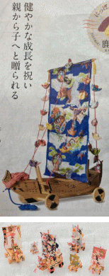 日本の最西南端・鹿児島県南さつま市にある坊津は東シナ海を行きかう船舶の寄港地として栄えた港町です。 この町に伝わる船形の郷土玩具が「ガラガラ船』ユニ-クな名前は、子供たちが引く際にガラガラと音が鳴ることから名付けられたと言われています。 端午の節句には鯉のぼりが一般的ですが、港町である坊津では暮らしにおいて重要で身近な存在だった「船」の形をした玩具が伝えられてきたそうです。 ガラガラ船は全長60㎝ほどで、昔の木造船をモチ-フとしています。船体に4つの車輪が付けられ、先端には大漁を祝う船飾り、華やかな帆に、 帆網にはサイノコと呼ばれる水夫をかたどった人形が吊るされています。 「昔は各家庭で父親や祖父が船体を、母親や祖母が帆やサイノコを作り、帆には、子どもの晴れ着やお母さんの着物の古着を使うことが多く、今よりもっと素朴だったようです。」(坊津ガラガラ船・唐カラ船保存会の会長・谷川茂洋さん談)「最近は作れる人が少ないので、作って欲しいと頼まれるんだけど、西陣織、金糸を使った帆がいいと言われるね。やっぱり親心だね」(保存会の織 田聖さん談)家ごとに伝わる船体のデザインがあり、作り手の個性や工夫が見られるのもガラガラ船の魅力。 |