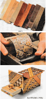 その特徴は模様の精密さと多用さ。白色や黄色、赤色など30種類を超えるさまざまな色の木々を組み合わせて幾何学模様を作り出します。