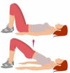 おしり筋を鍛える簡単な運動 1,仰向けになり、膝を90度に曲げ両手は床に置く 2,お腹に力を入れながらおしりをあげる(腰が反らないように) 3,頭とおしりのラインが一直線になったら30秒キープ 4,おしりをゆっくり下げる 5,30秒✕3セットを目標に |
