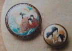 鹿児島の「白薩摩」とよばれる薩摩焼の陶器でできていて、それに絵付けしたもの。が薩摩ボタンだそうです。 江戸時代に藩の財政強化のために輸出用として作られたという説もあり欧米の方々には人気だったが国内ではあまり知られていないようです。 私も初めて聞きました。大きさは様々で、小さなものは直径わずか0.8センチで、その小さなキャンバスの中に精巧な文様が描かれている様はため息が出るほどの美しさだそうです。
